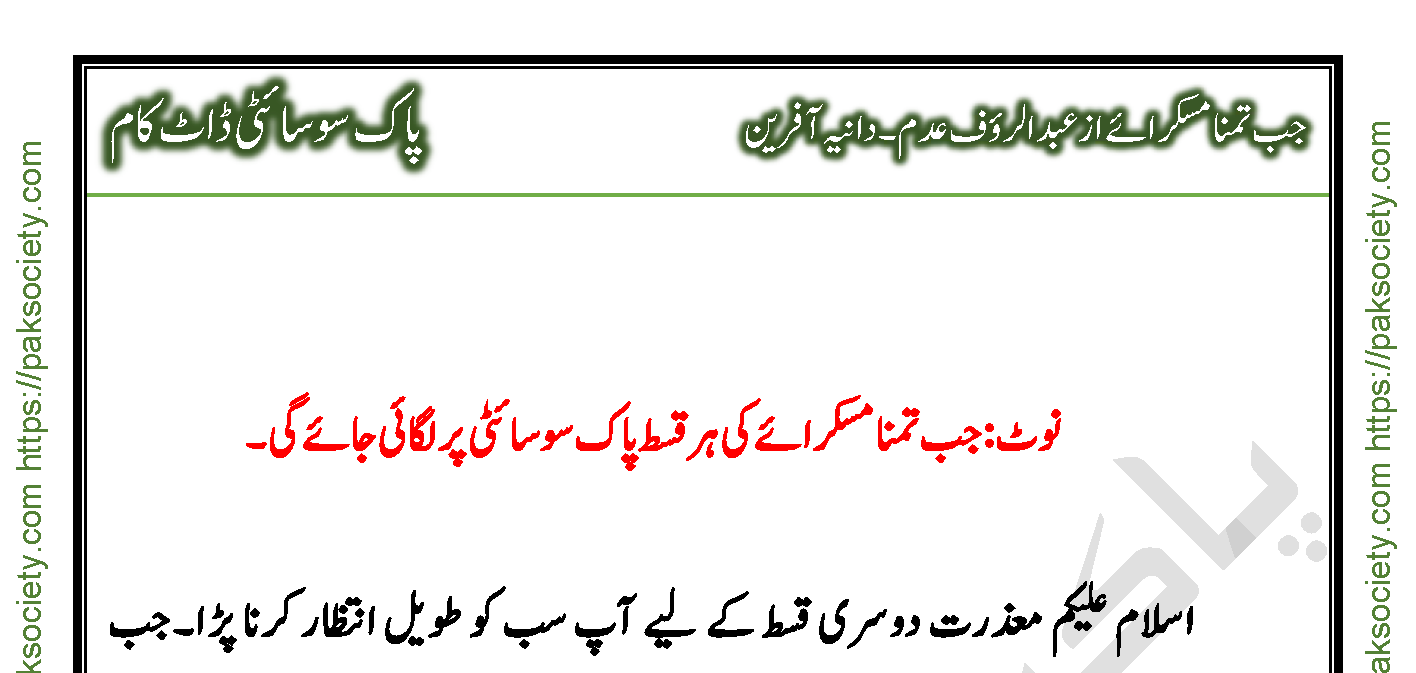 Read Online Jab Tamana Muskrae Episode 2 By Danyah Afreen and Abdul Rauf Adm Specially written for Paksociety readers