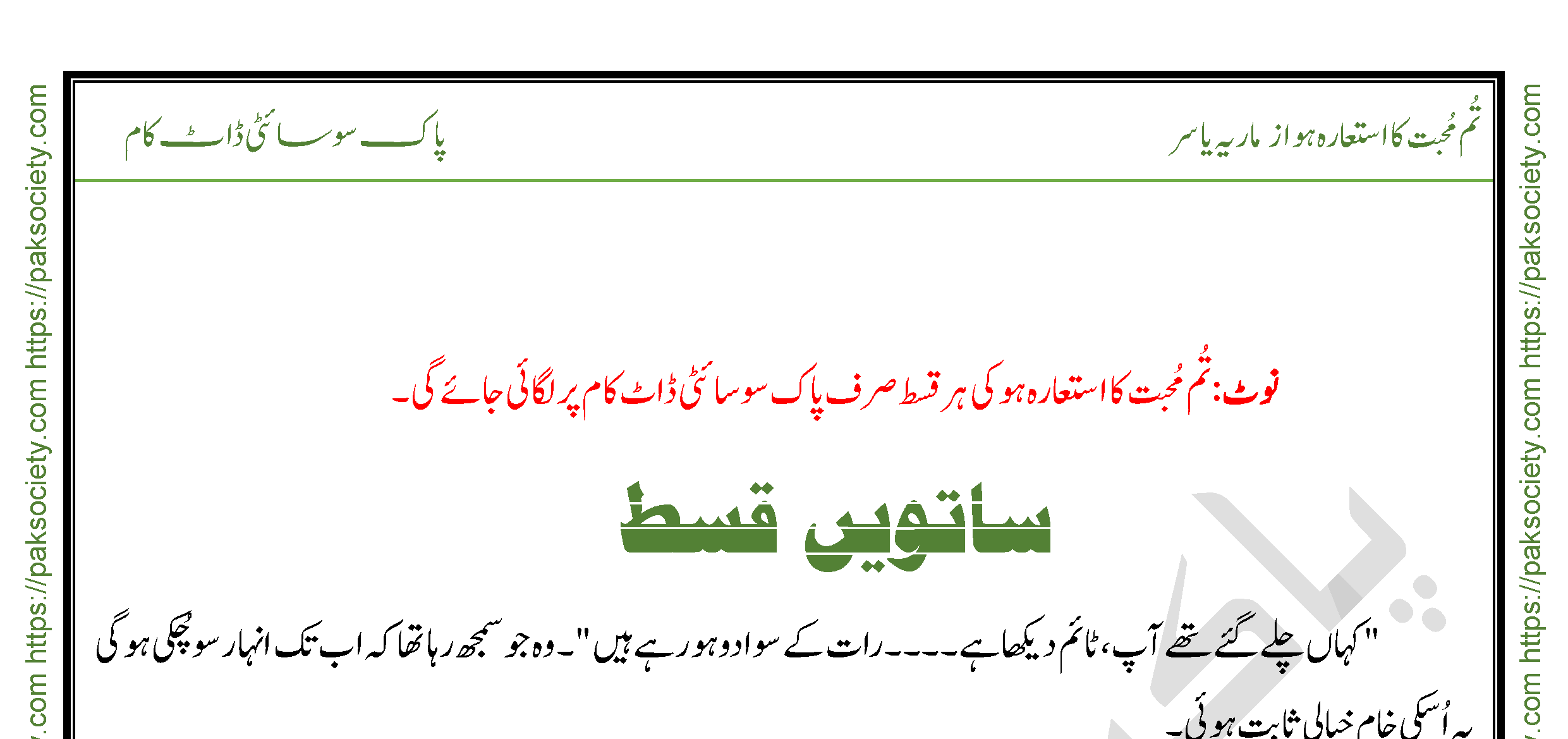 Read Online Tum Muhabbat Ka Istara Ho Episode 7 By Maria Yasir Specially written for Paksociety readers