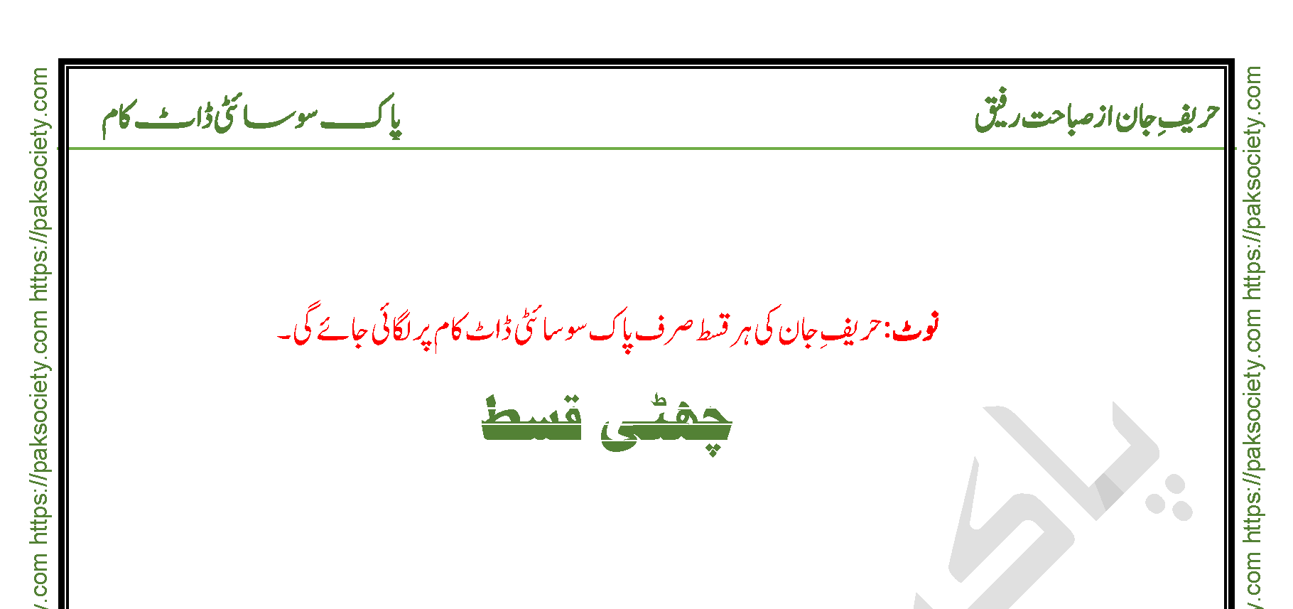 Read Online Hareef E Jan Episode 6 By Sabahat Rafique Specially written for Paksociety readers